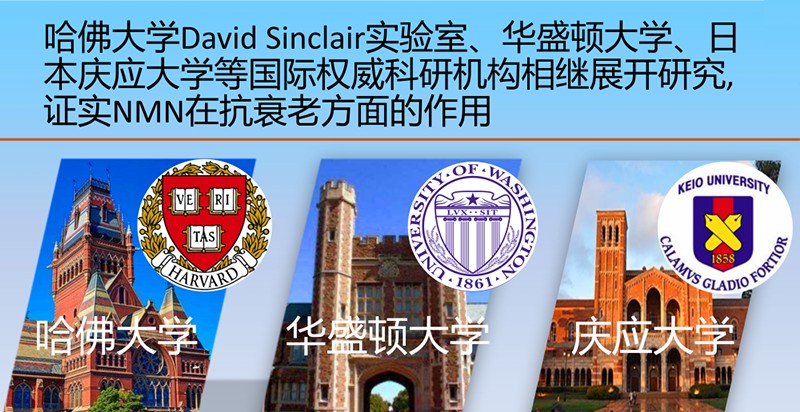 ④NMN的延長壽命和抗衰功效得到哈佛醫(yī)學(xué)院,華盛頓大學(xué),日本慶應(yīng)大學(xué)等世界頂尖科研機(jī)構(gòu)的支持